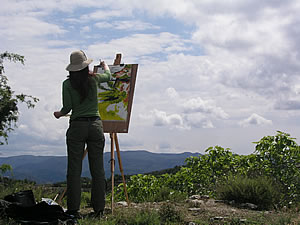 Los pintores trabajan en los alrededores del pueblo.También es posible trabajar de forma independiente.
